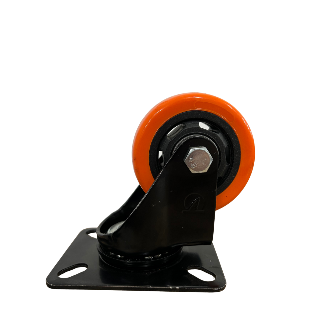 GARFO - Fabricado em chapa estampada e cabeçote com dupla pista de esferas, acabamento zincado. Eixo da roda parafusado.